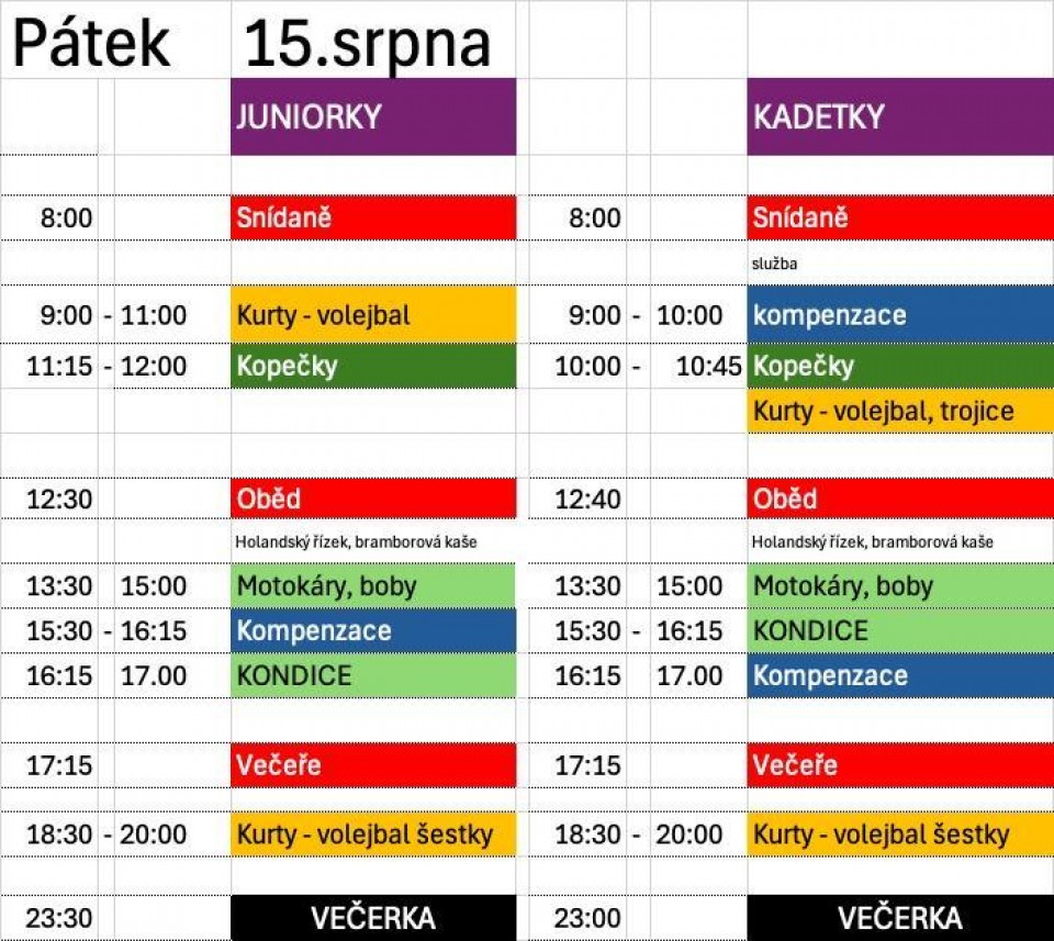 21. 8. 2025, Letní soustředění našich mládežnic v Kutné Hoře a Dolním Bušínově