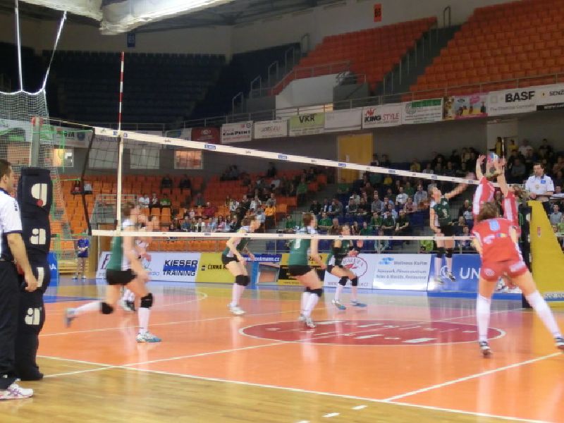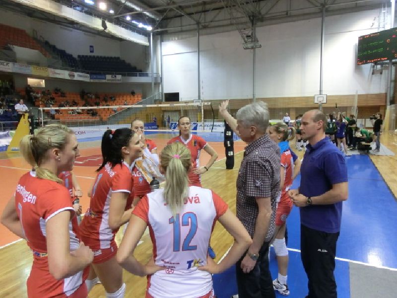 Snímky ze třetího utkání semifinálové série nejvyšší české soutěže 2013/14 na jihu Moravy, kde naše volejbalistky skvěle prolétly do finále