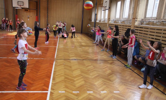 Tělocvična byla rozdělena na čtyři stanoviště, přičemž na každém z nich holky absolvovaly jiné cvičení. Na prvním si zkoušely ovládání volejbalového míče, na druhém skákaly z místa do dálky, na třetím běžely slalomovou dráhu s kotoulem vpřed a na čtvrtém testovaly odrazové schopnosti s pomocí trampolíny.
